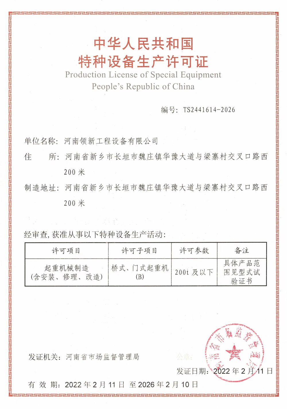 特種設(shè)備生產(chǎn)許可證